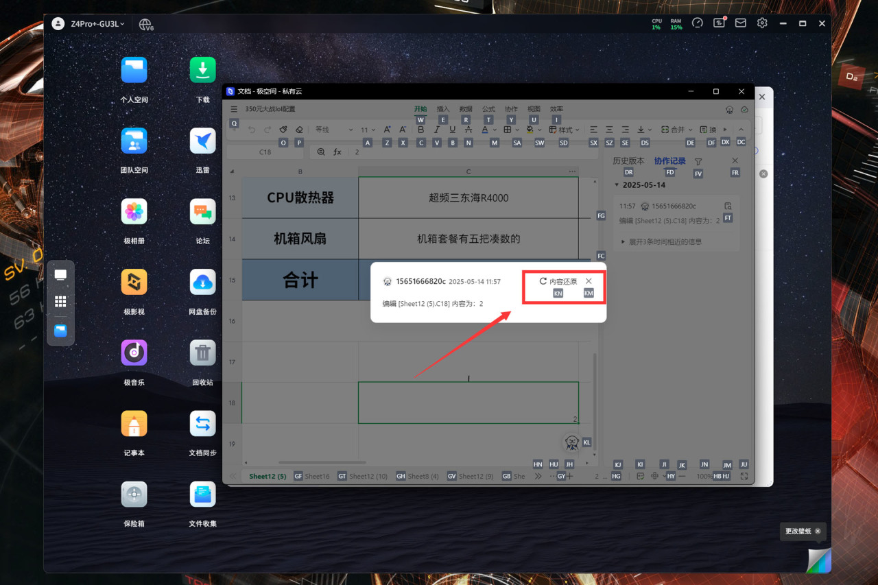 單獨說一下文檔,極空間內置的管理器是WPS,現在已經全量上線極空間的本地文檔編輯功能,支持團隊空間多人協同編輯,客戶端中直接可以打開編輯,並且支持多賬號協同+版本快速回溯,最新版本還新增了離線編輯功能,打工人體驗極佳。