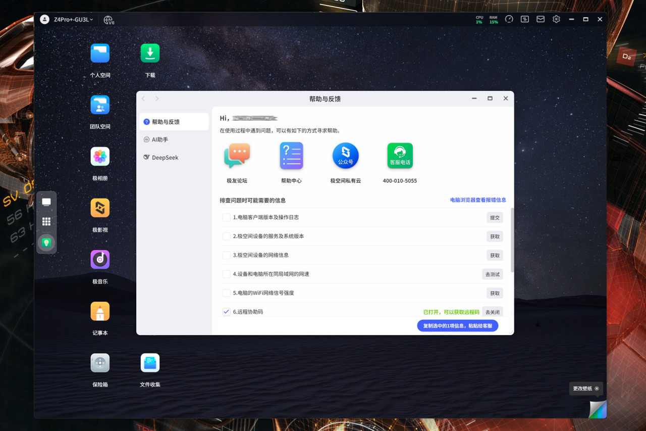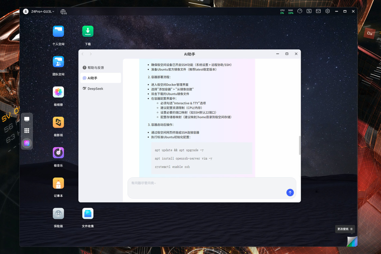 極空間Z4S內置的AI助手套件雖然沒標註,目測1.5B,不能自選參數量。