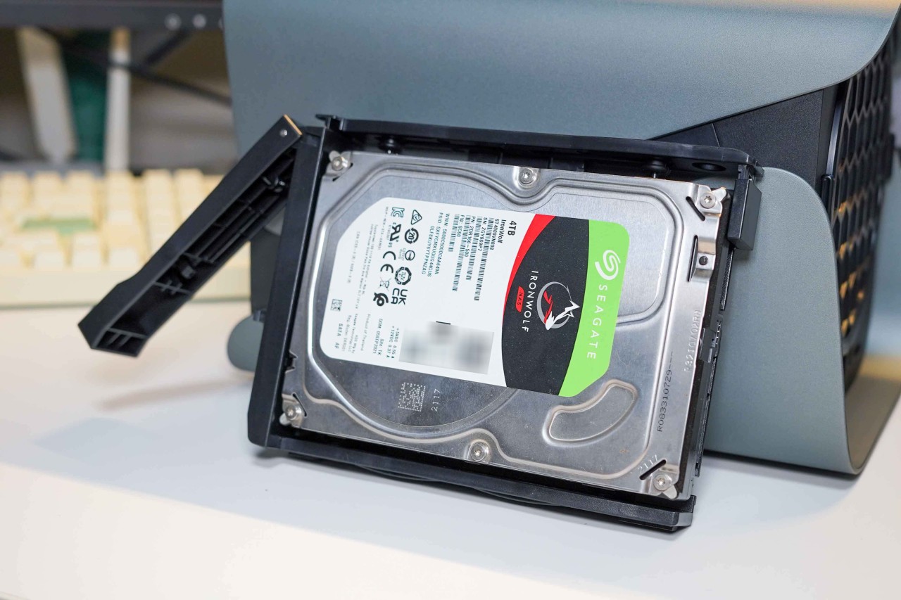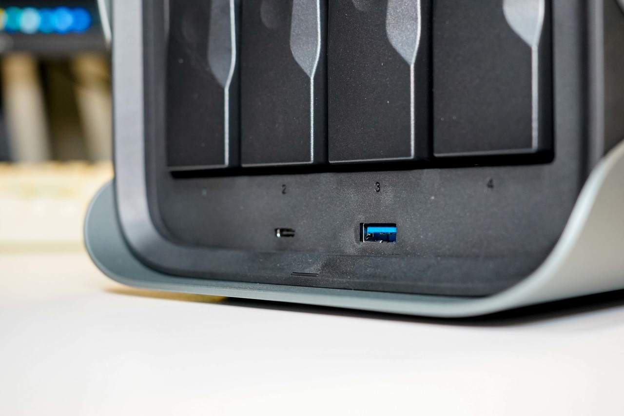 按鍵被設計在機身左側,四顆硬盤工作指示燈也在同側,操作開關機和監控工作狀態不用換角度,物理操作邏輯比較合理。