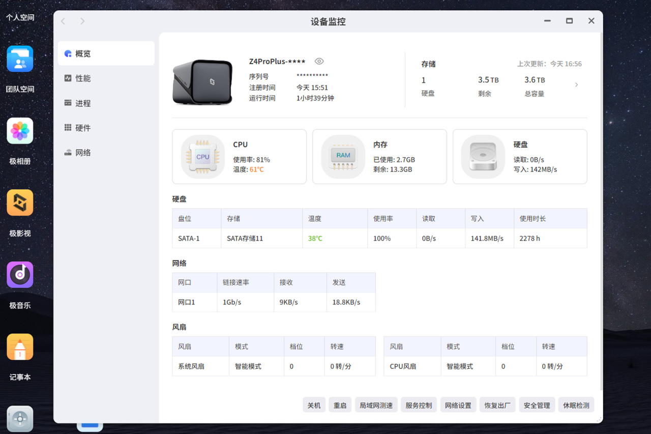 常規用戶不要有硬件配置焦慮,NAS三分看硬件,七分看系統軟件,我自己的極空間Z4S作爲主力機已經三年多了,完全夠用。
