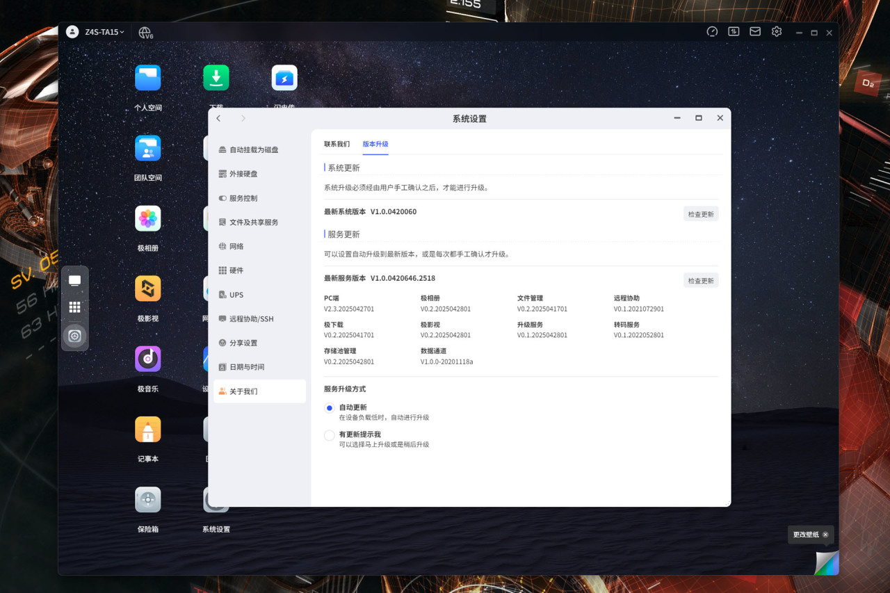 極空間Z4Pro+由於是新機,出廠的系統版本會高一些,這算新機的一個專屬優勢,目前確認的是極空間Z4Pro會同步相同系統,極空間Z4S及更老機型待定。