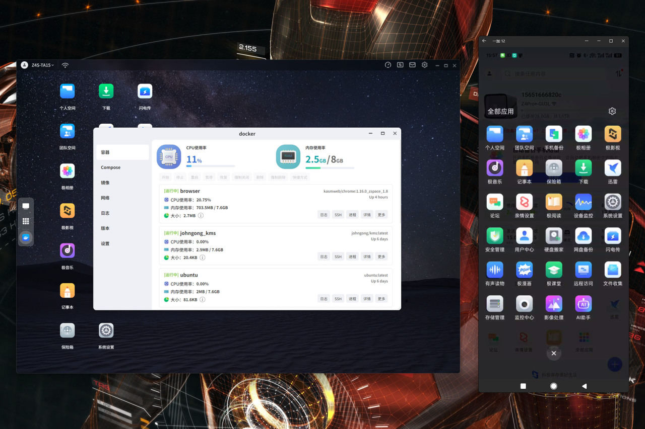 另外確認的是手機端App會支持Docker管理,目前還沒上,玩機黨可以期待下,畢竟手機App直接監控和控制容器,會比手機網頁端管理方便點。