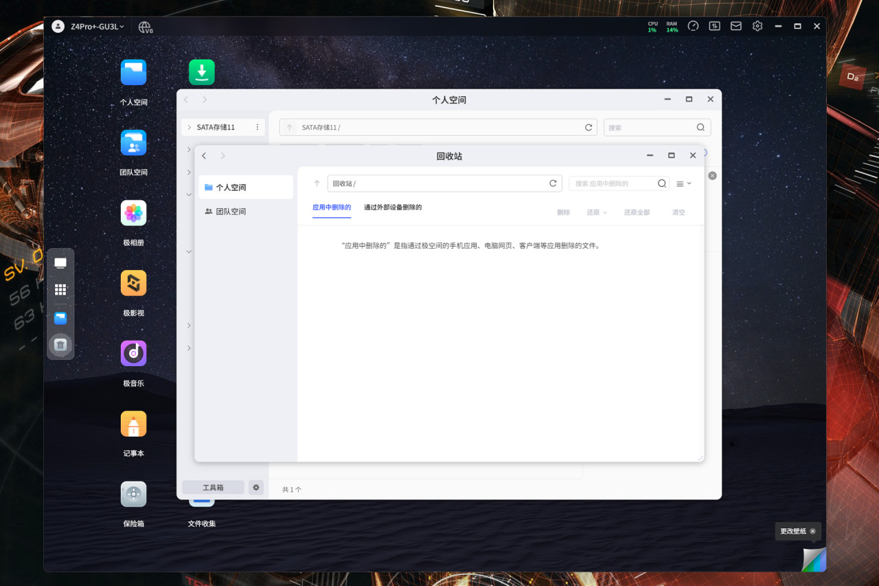 數據管理同樣齊全,以回收站功能爲例,可以查看應用刪除和外部設備刪除的文件,支持自定義恢復誤刪除的文件,對常規用戶來說,等快照上線應該會更方便一些。