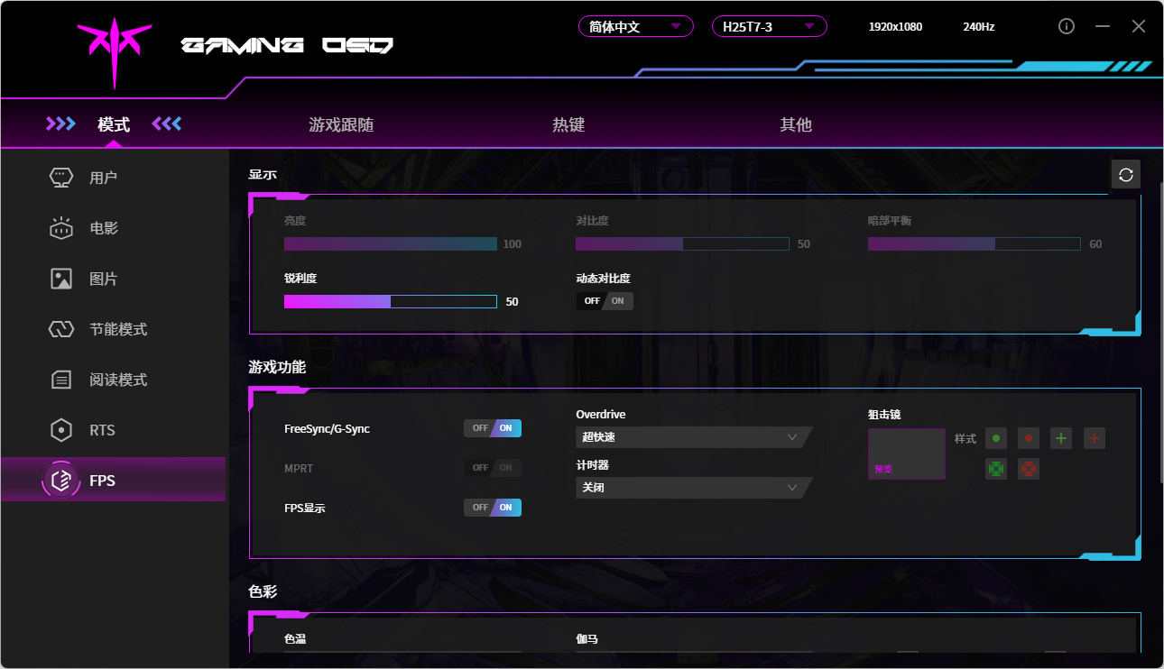 兩者對比度、色溫、銳利度什麼的都能調,KTC多了個暗部平衡,能提升暗部細節。至於官方吹的狙擊鏡準星都有(這玩意也能當賣點就離譜)