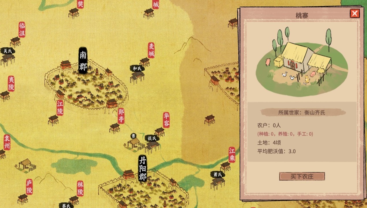 從躲避戰亂初到丹陽郡白手起家開始,規劃合適的工作內容,見證族人從商從政.建設家園,傳宗接代,帶領世家走向人丁興旺,繁榮富強,便是遊戲的主要目標。