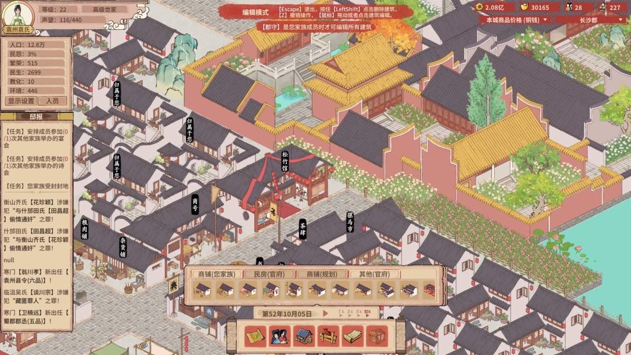 它給出的模擬經營玩法比我想象中要更廣,不止侷限於佈置中式園林,還可以打造一整片自己心中的古風城池,然後在建設經營下看着民生和繁榮度穩健上漲,城市逐漸恢復車水馬龍。