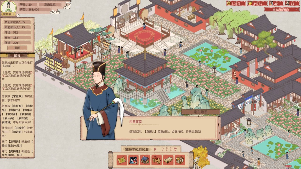 這麼一款策略+經營的沙盒遊戲就像古風版《族人》,玩家可以在遊戲裏進行一代代的家族傳承,發展產業,壯大世家,商政兩通,並且自由設計自己的家族府邸與農莊。