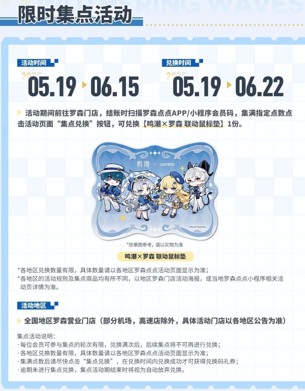 5月19日-6月15日,參與羅森門店集點活動,即有機會獲取【鳴潮x羅森 聯動鼠標墊】1份。