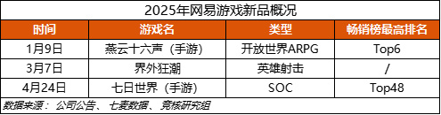 如果我们将时间线放宽至2025年全年,会发现网易游戏的产品线有待进一步优化。