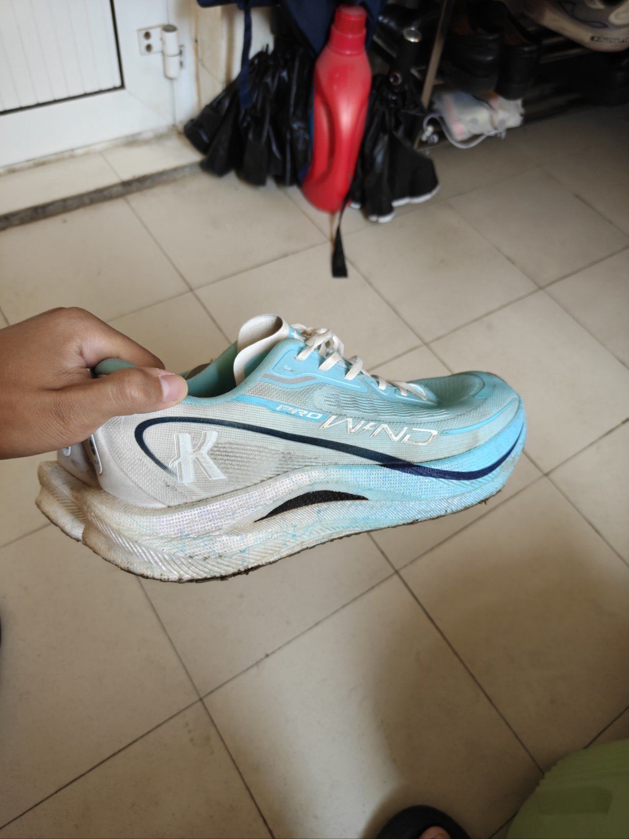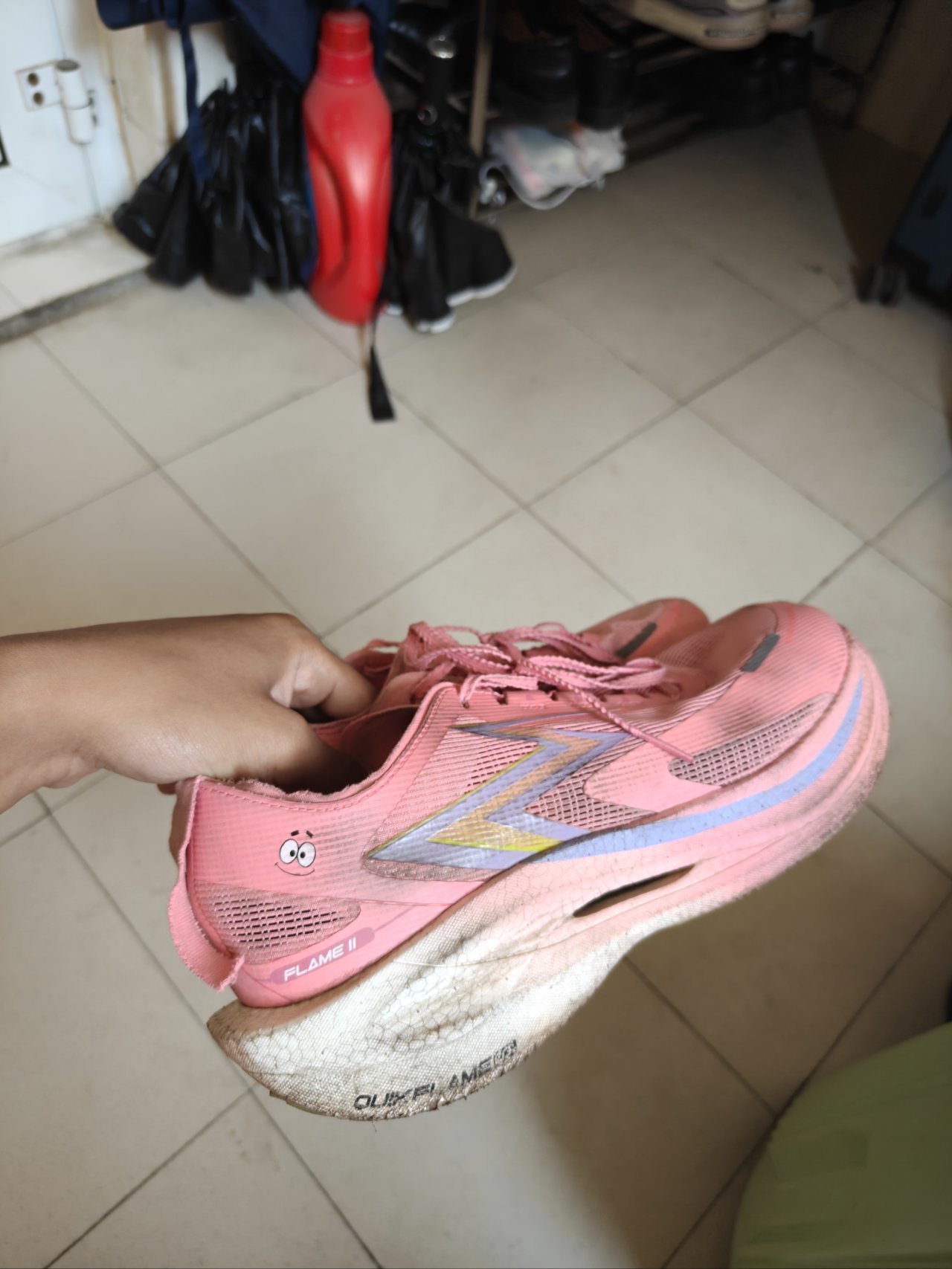 第三双是我目前穿着最舒服的碳板鞋,361的飞燃2.5。脚感很轻,回弹充分,平常训练跑步都爱穿。