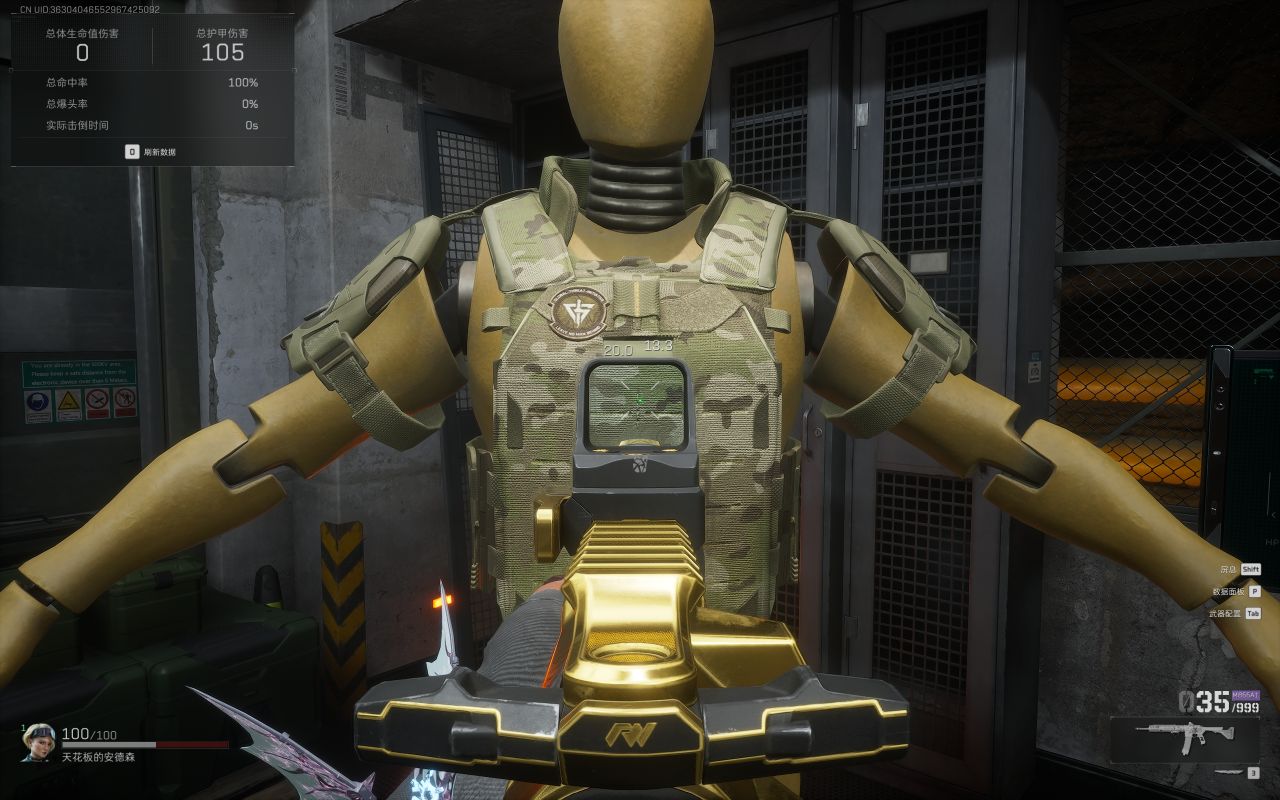 使用416射擊重型防彈背心,三槍還會剩餘20護甲。也就是說,此時它已經扛不住下一發攻擊了