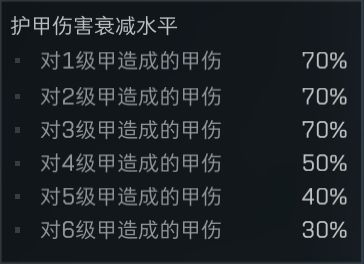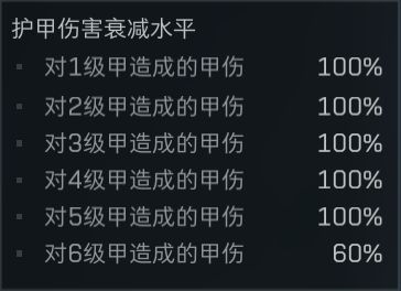 然而考慮到不同的甲彈對抗,穿透後保留的傷害是不一樣的,因此爲了便於計算,我們就用“穿透係數”,來表示子彈命中護甲後保留的傷害