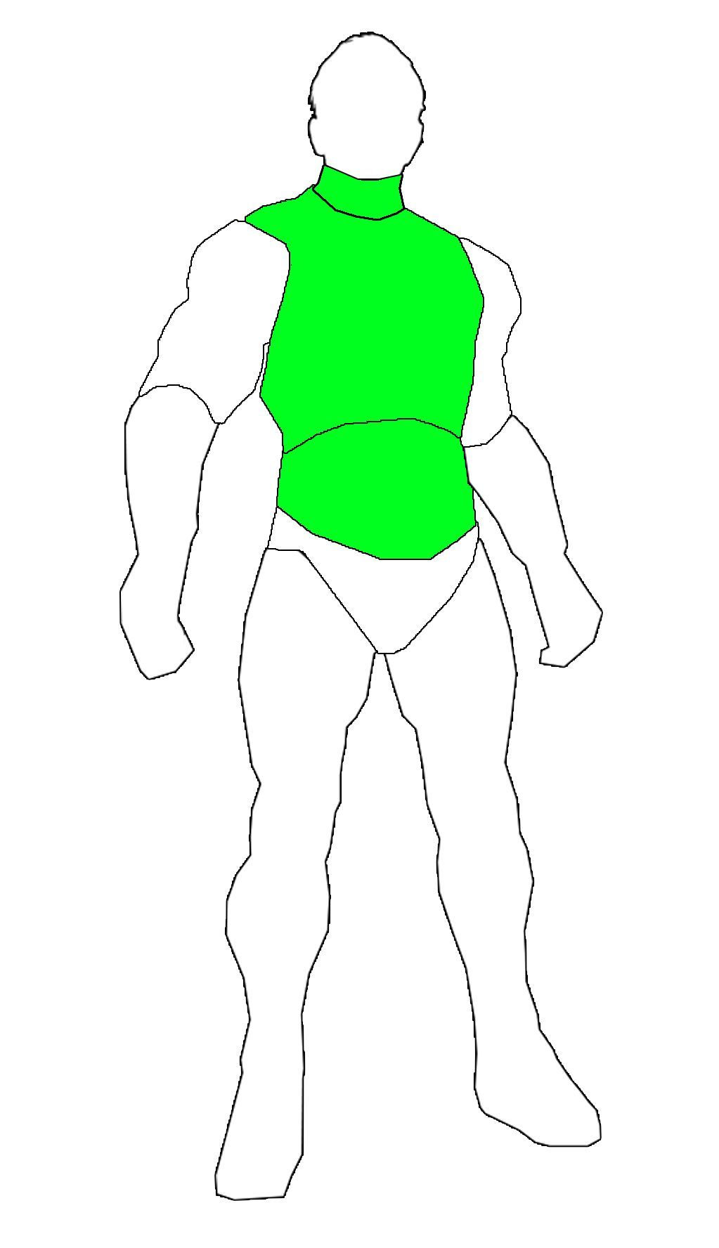 下圖中綠色部分,就是這類護甲的防護區域,我將其稱爲半甲