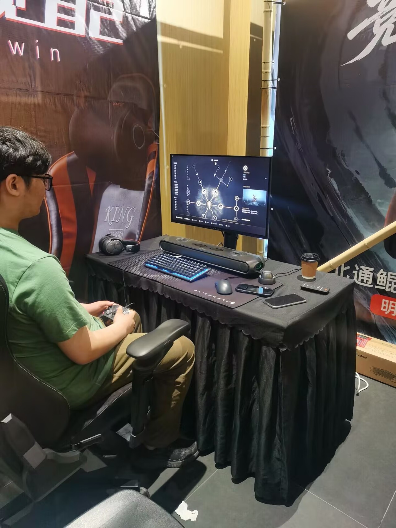 另一方面明末的商业价值实打实的得到了资本的认可,明末线下试玩会可谓是笔者有记忆以来最豪华的没有之一,这不仅仅是因为成都是夏老师的老家,牌面肯定要到位。最重要的因素来自于赞助,本次参与试玩的玩家都获得了来自北通的鲲鹏40联名手柄,OXS傲希 Storm G2头戴式电竞耳机以及其它丰富的小礼品周边(具体参考P3.4.5)。而在试玩会中使用的电脑设备则是由外星人提供。