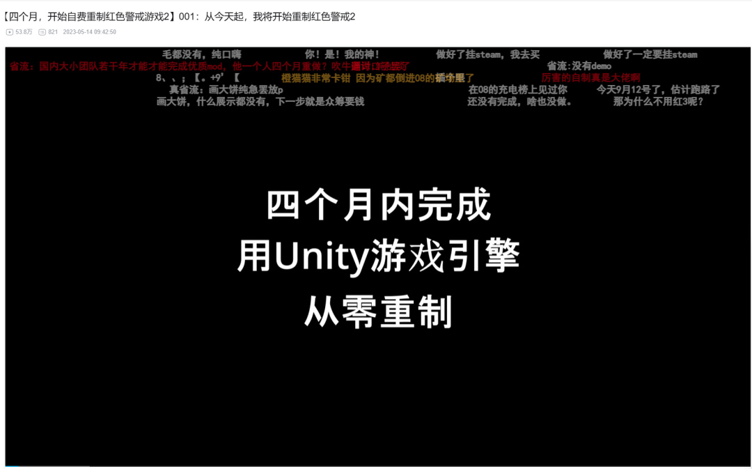 还有部分想要搞个大新闻的创作者。比如一位UP于2023年月发布视频《001:从今天起,我将开始重制红色警戒2》,宣称将在四个月内,用Unity从零重制3D红警2。