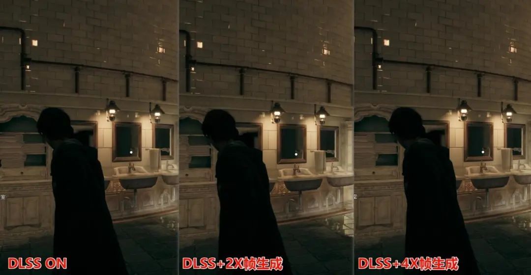 开启2X帧生成和4X多帧生成后,帧数表现则能蹿升到80FPS和150FPS左右。而且凭借着这么多年的持续优化,《赛博朋克2077》的帧数表现也是这几个游戏中最为稳定的,靠着Transformer模型进一步提升了对画质的优化,让光线重构更好地发挥了它的优势。
