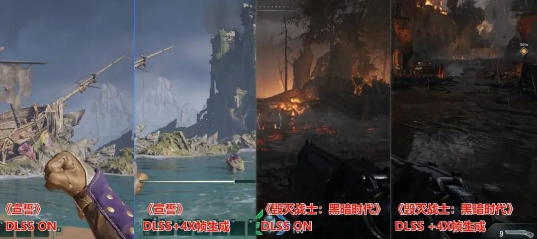 其中《宣誓》打开质量档DLSS超分的情况下,RTX 5060的FPS维持在80帧左右,在RTX 3060上倒是有个没落后太多的70FPS;不过在RTX 5060上打开了这代显卡独享的4X多帧生成后,帧率立马拉升到190FPS,踏入了高刷游戏的行列。