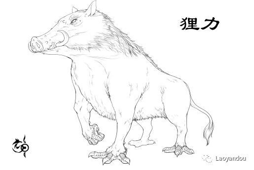 《山海经》原文:有兽焉,其状如豚,有距,其音如狗吠,其名曰狸力,见则其县多土功。