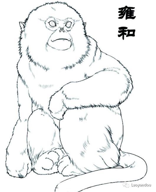 《山海经》原文:有兽焉,其状如猿,赤目、赤喙、黄身,名曰雍和,见则国有大恐。