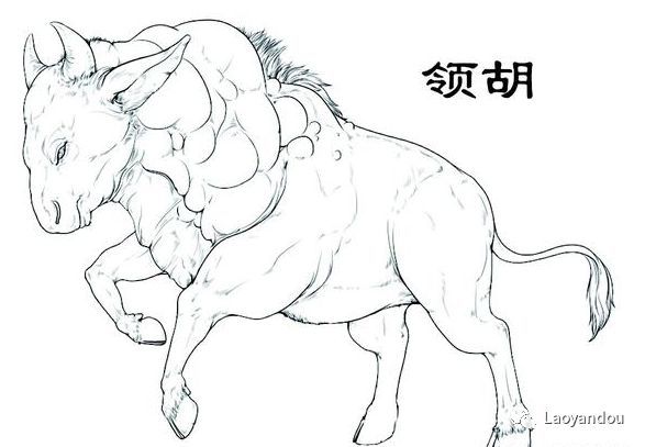 《山海经》译文:山中有一种野兽,形状像普通的牛而长着红尾巴,脖子上有肉瘤,像斗的形状,名称是领胡,它发出的叫声便是自身名称的读音,人吃了它的肉就能治愈癫狂症。