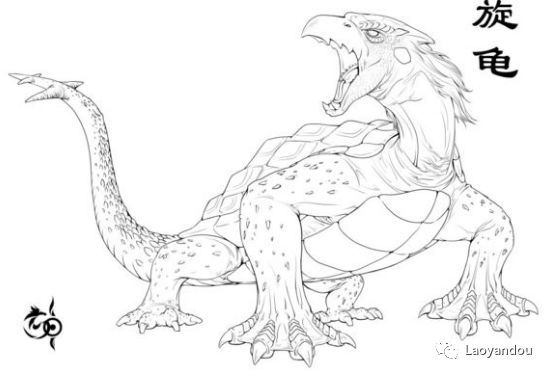 《山海经》译文:水中有众多暗红色的龟,形状像普通乌龟却长着鸟一样的头和蛇一样的尾巴,名称是旋龟,叫声像劈开木头时发出的响声,佩带上它就能使人的耳朵不聋,还可以治愈脚底老茧。
