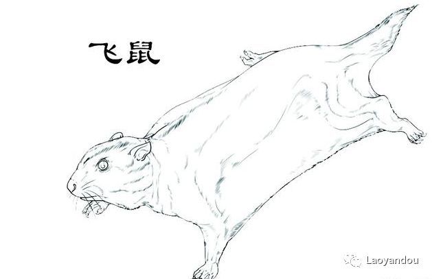 《山海经》译文:山中有一种野兽,形状像一般的兔子却长着老鼠的头,借助它背上的毛飞行,名称是飞鼠。