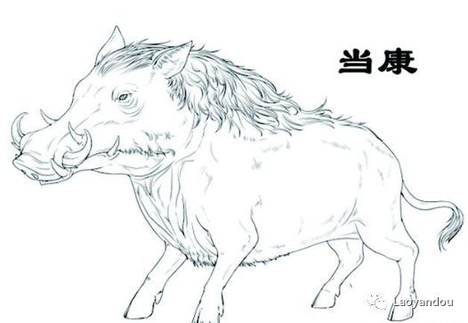 根据《山海经》的描述,当康是长着獠牙的猪,如要寻找最为匹配的动物,那也就是非洲的疣猪了。疣猪嘴角长有獠牙,身上有稀疏的毛,头部占全身的三分之一。