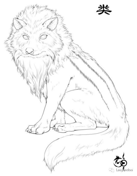《山海经》原文:有兽焉,其状如犬而人面,善投,见人则笑,其名山犭军,其行如风,见则天下大风。