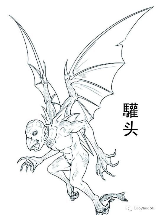 《山海经》译文:驩头长着人的面孔而鸟一样的嘴,生有翅膀,吃海中的鱼,凭借着翅膀行走。