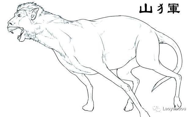 《山海经》译文:山中还有一种野兽,形状像普通的狗却长着人的面孔,擅长投掷,一看见人就嘻笑,名称是山犭军,它走起来就像刮风,一出现天下就会起大风。