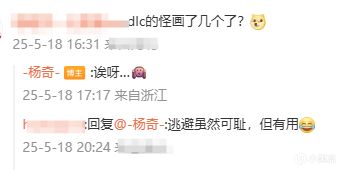 評論區迅速被“催更黨”佔領,玩家們一邊搶沙發追問“dlc怪畫了幾個?”,面對熱情攻勢,楊奇以一句“誒呀…🙉”巧妙迴避,卻不忘幽默吐槽合作插畫師劉冬子“瘦了導致衣服尺碼不對”,瞬間點燃粉絲玩梗熱情。