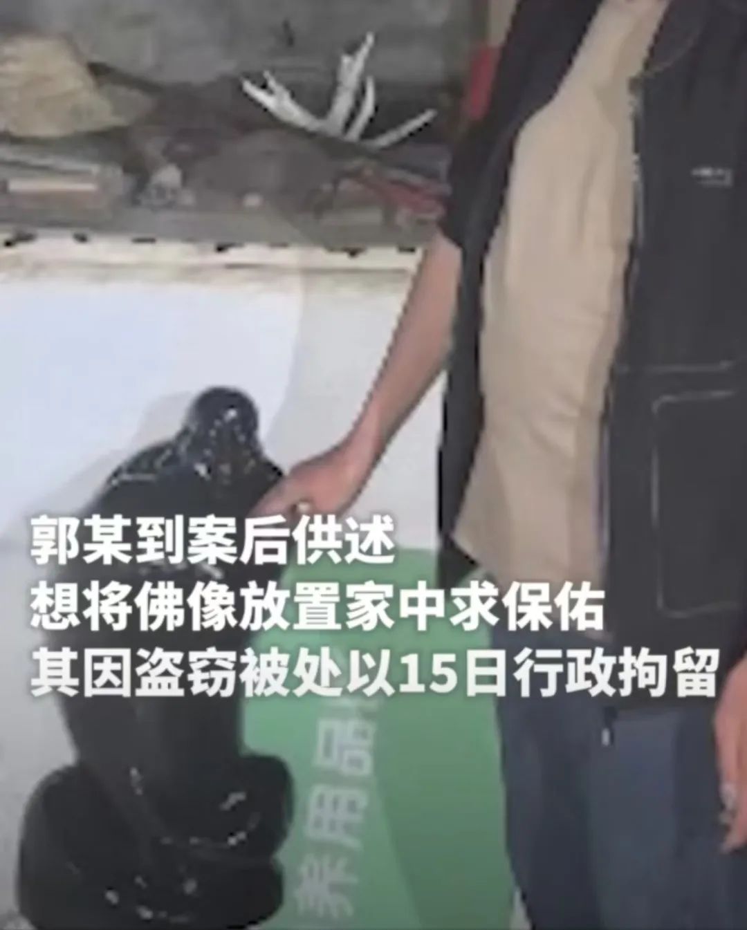 随后,民警将嫌疑人郭某抓获,其称为求保佑将佛像盗回家供奉,其因盗窃被行拘15日。