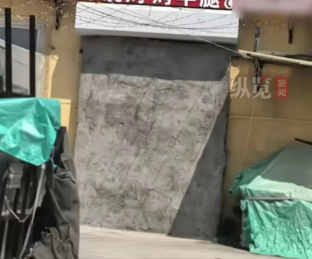 山东一炸串店大门半夜被不明人士砌了一堵水泥墙