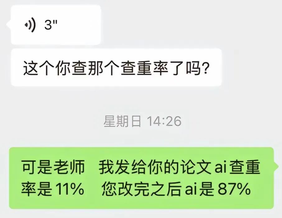 “我写的内容会被识别成AI,而AI写的反而不会被识别成AI,因此AI检测论文就是在检测谁能把话说的更不像人话。”25届毕业生小蛋如是说,此处内含脏话过滤器。