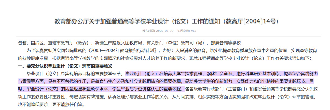 所以,毕业论文,真有必要检测AI生成疑似度吗?我们来看看教育部对毕业设计的要求: