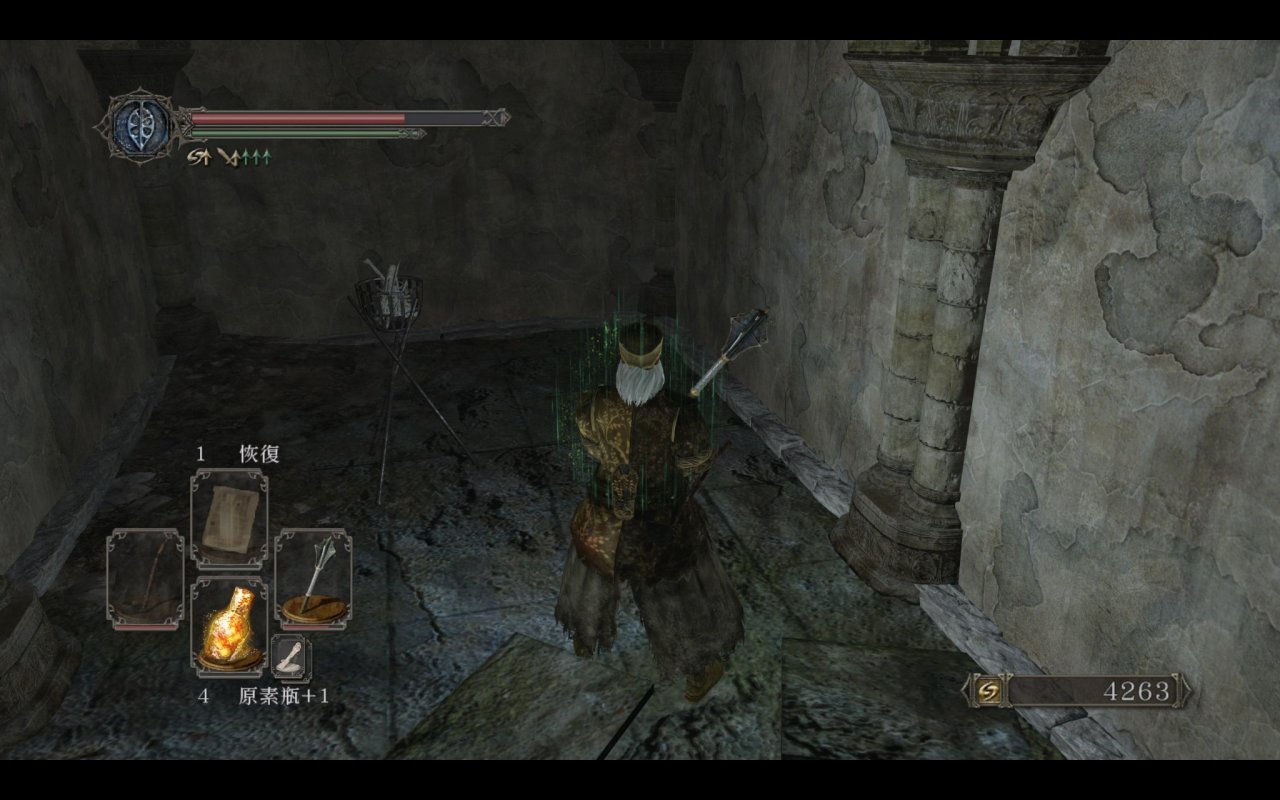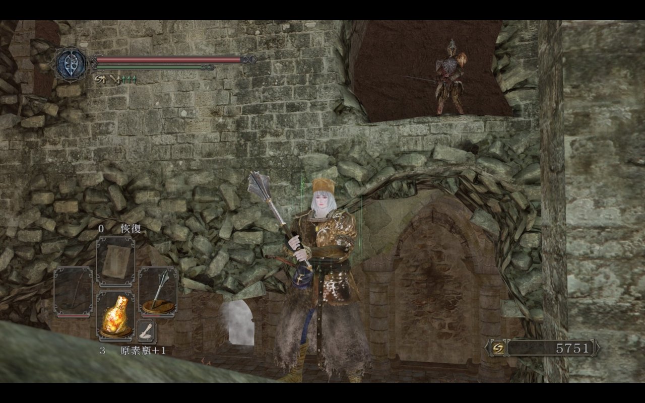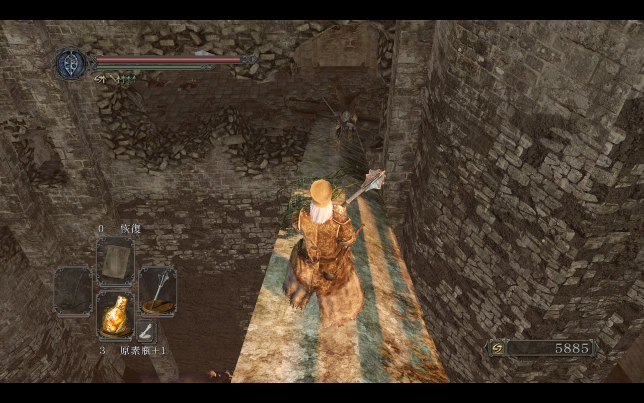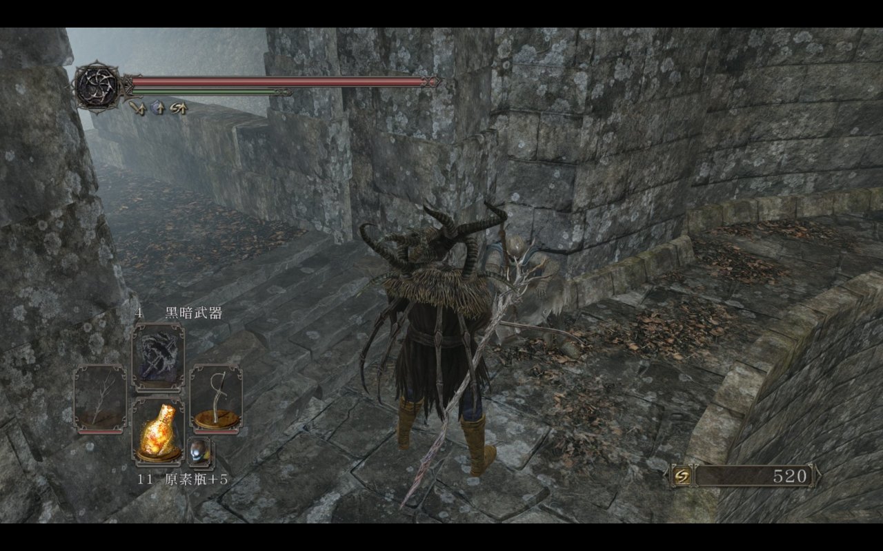 我们都知道主塔捷径外的平台上是可以提前打咒缚者的,原版的平台上没有任何物品和其余敌人,那三个装s的王国士兵都是原罪新增的。