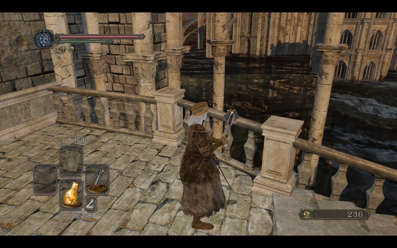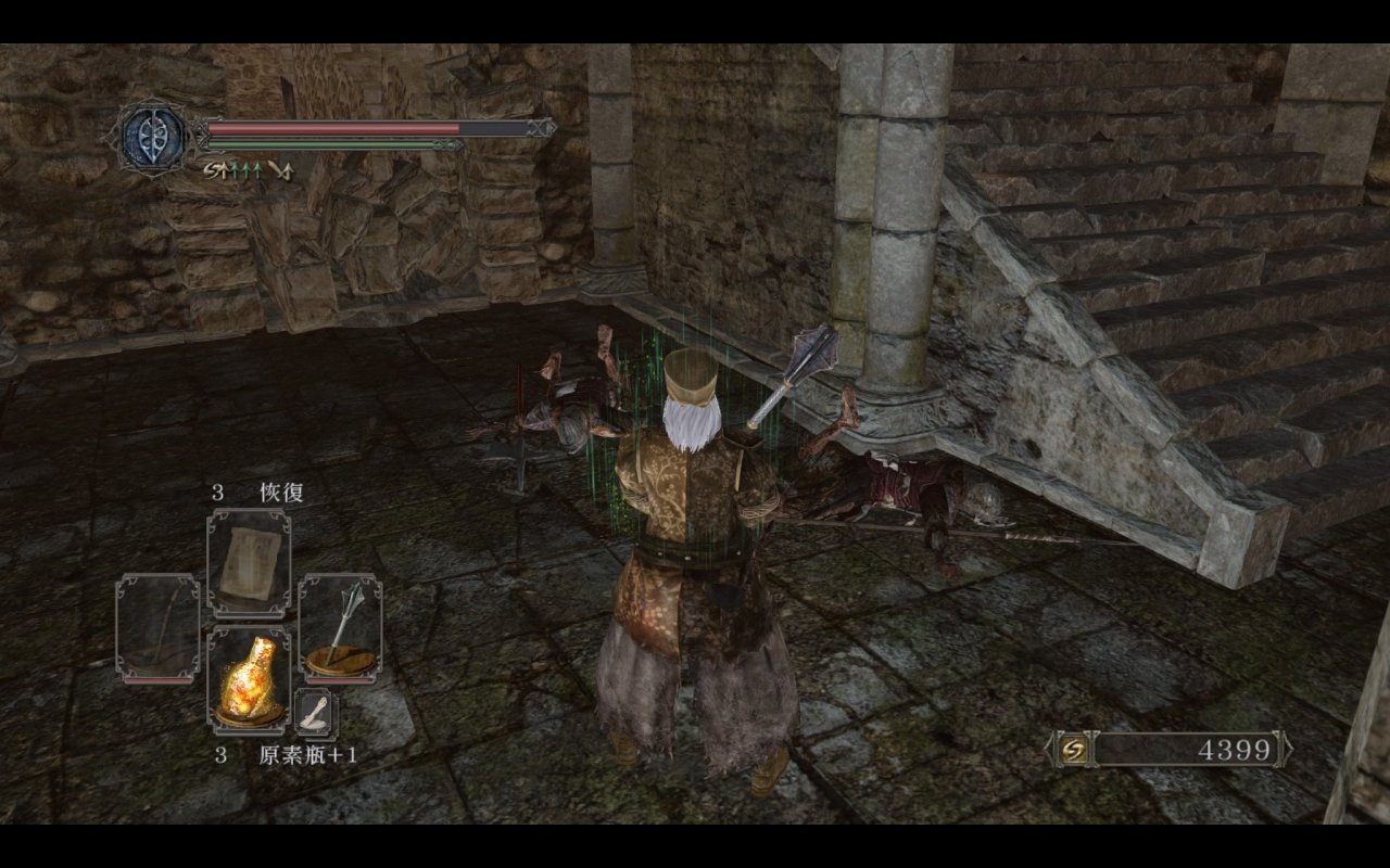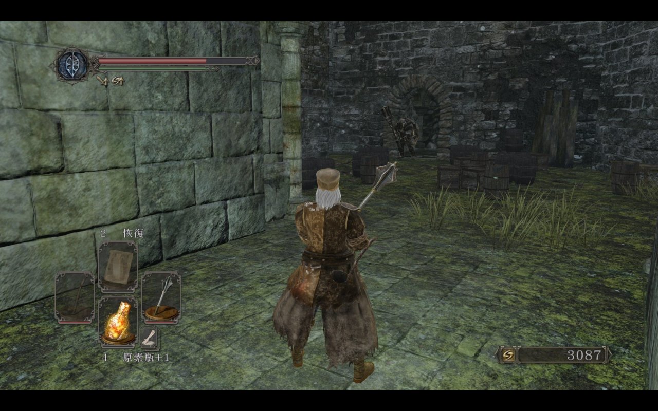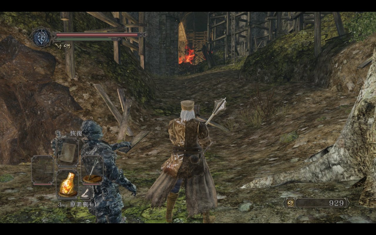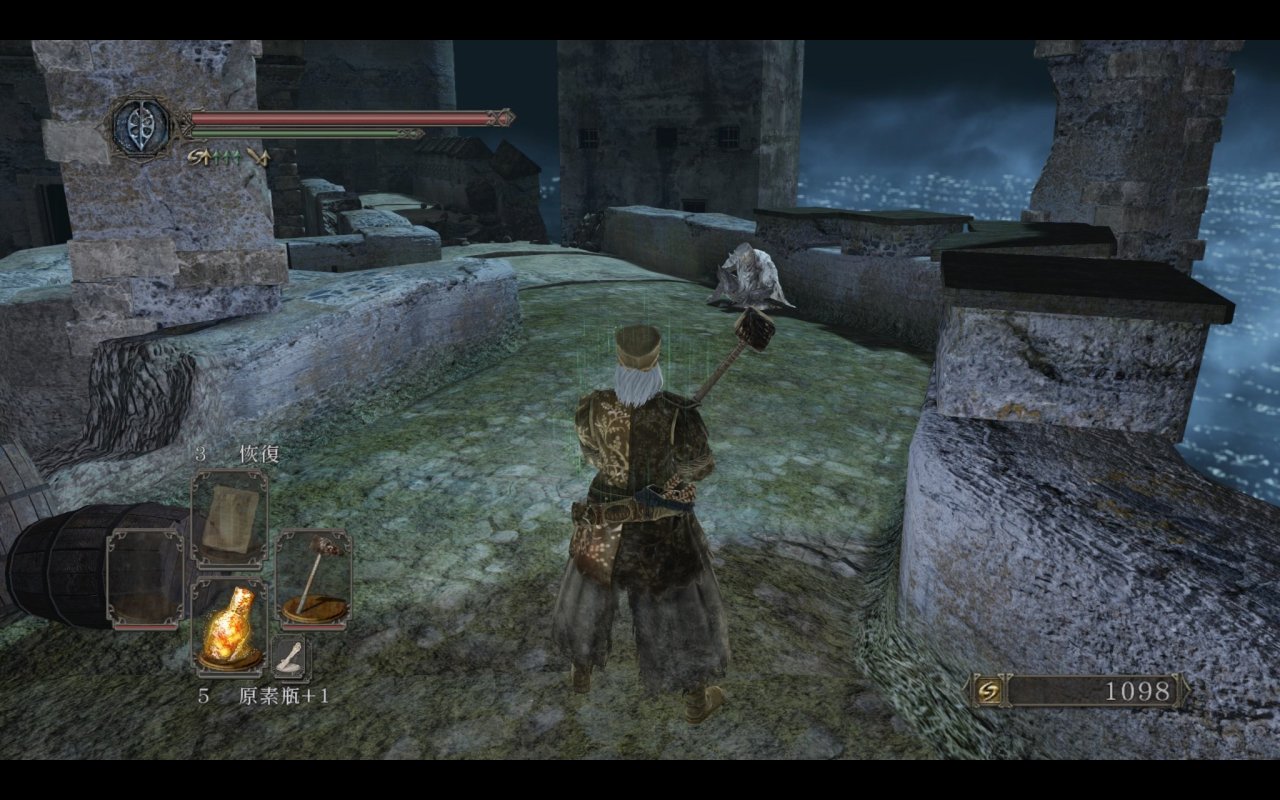 我们都知道主塔捷径外的平台上是可以提前打咒缚者的,原版的平台上没有任何物品和其余敌人,那三个装s的王国士兵都是原罪新增的。