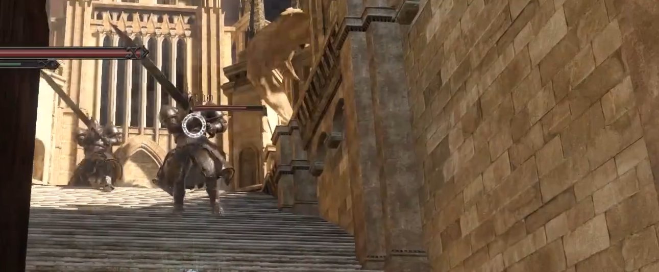 还有从巨人森一火上梯子的平台,被誉为魂二的经典堆怪场景。