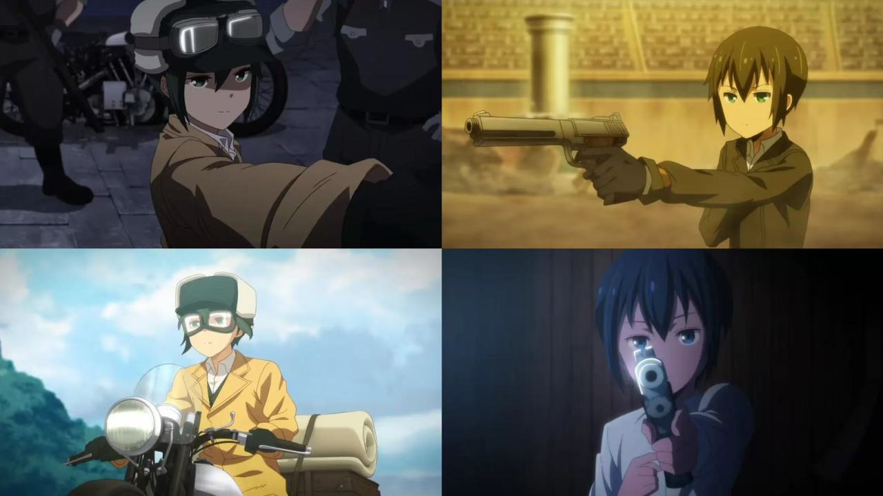 主人公——人类奇诺与会说话的摩托车汉密斯,毫无目的地在世界各处旅行。
