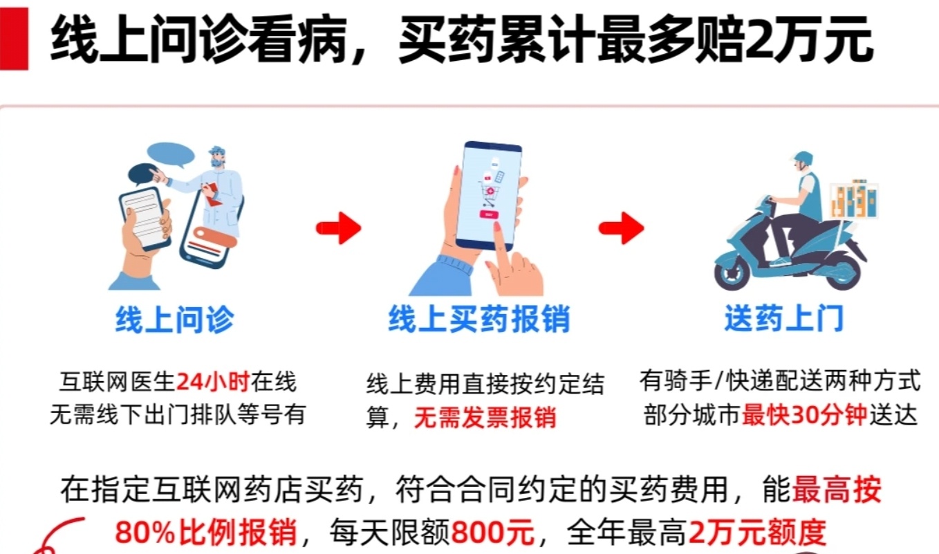 有些医院只开通了异地就医住院报销,无法报销门诊,可能需要我们自费。可以考虑在医保基础上给自己配一个门诊险。这样的话,异地就医时门急诊的检查、治疗等费用,医保报销完,还有机会用门诊险再报销一次。而且日常小病小痛还能线上问诊,在指定药店买药,配送上门。