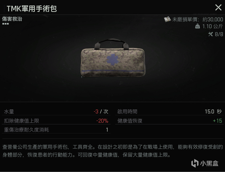 3、去除了使用手術包後對角色部位血量上限的扣除效果;