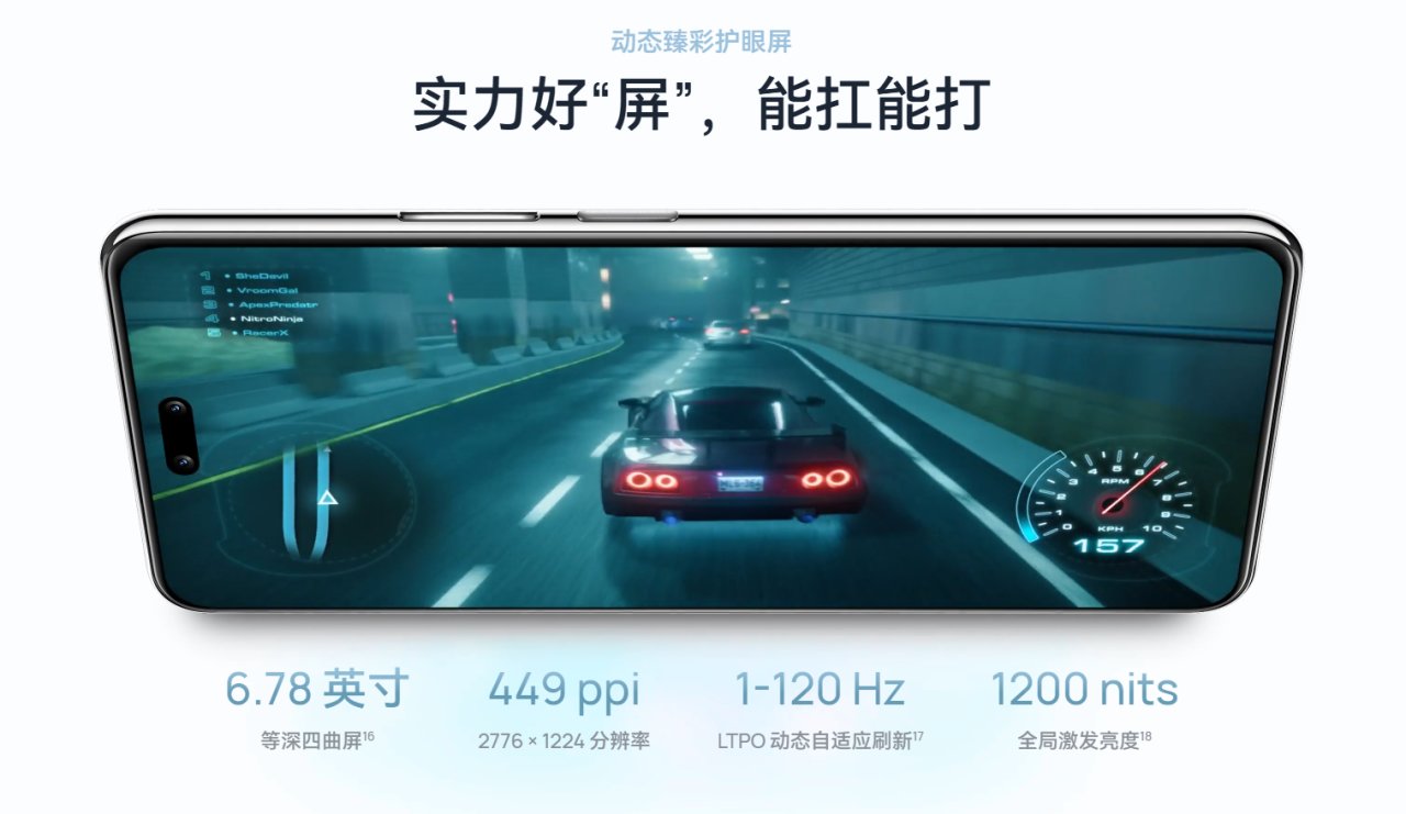 屏幕:6.78英寸 1.5K 120Hz 等深四曲屏,支持LTPO,低亮度2160Hz PWM调光;