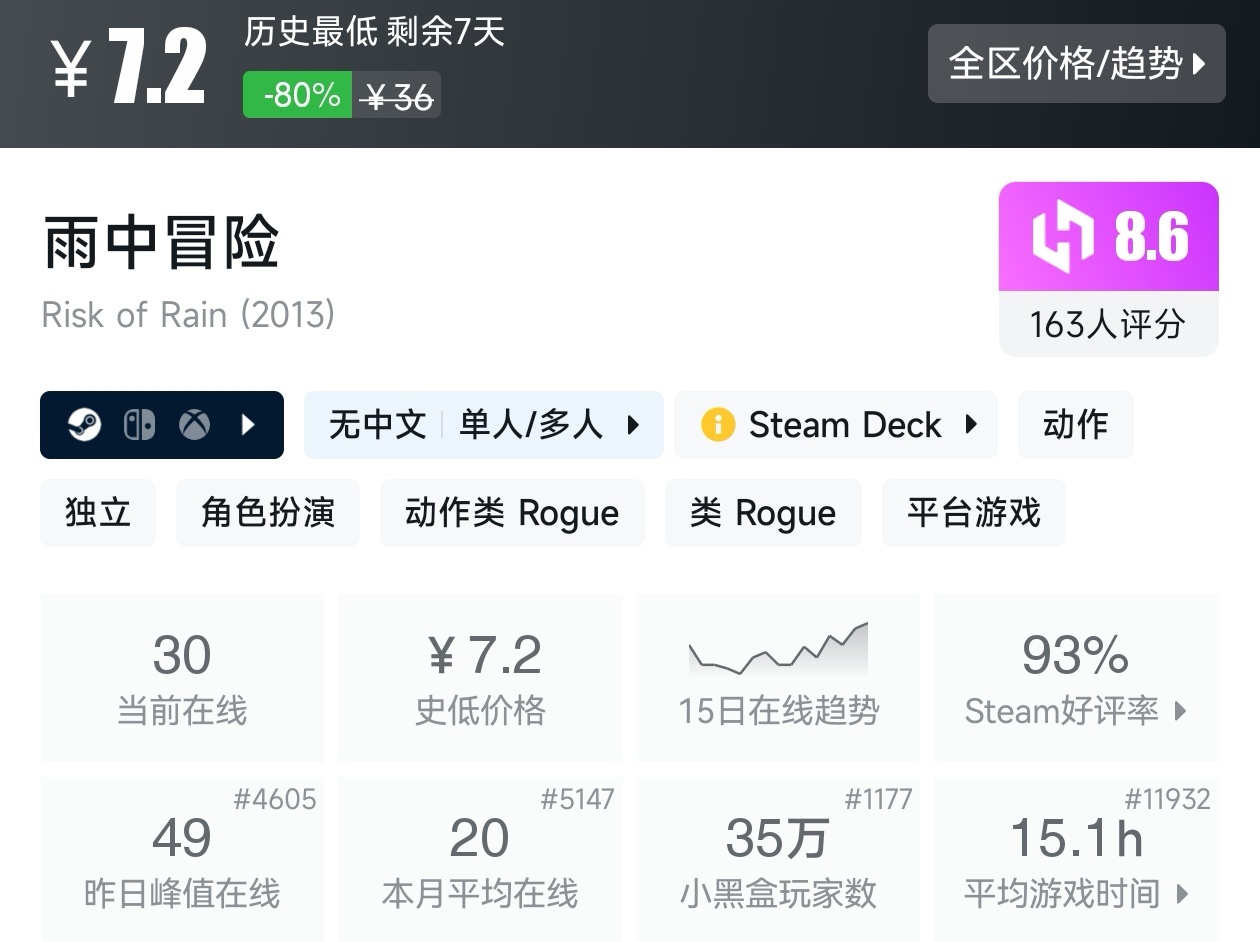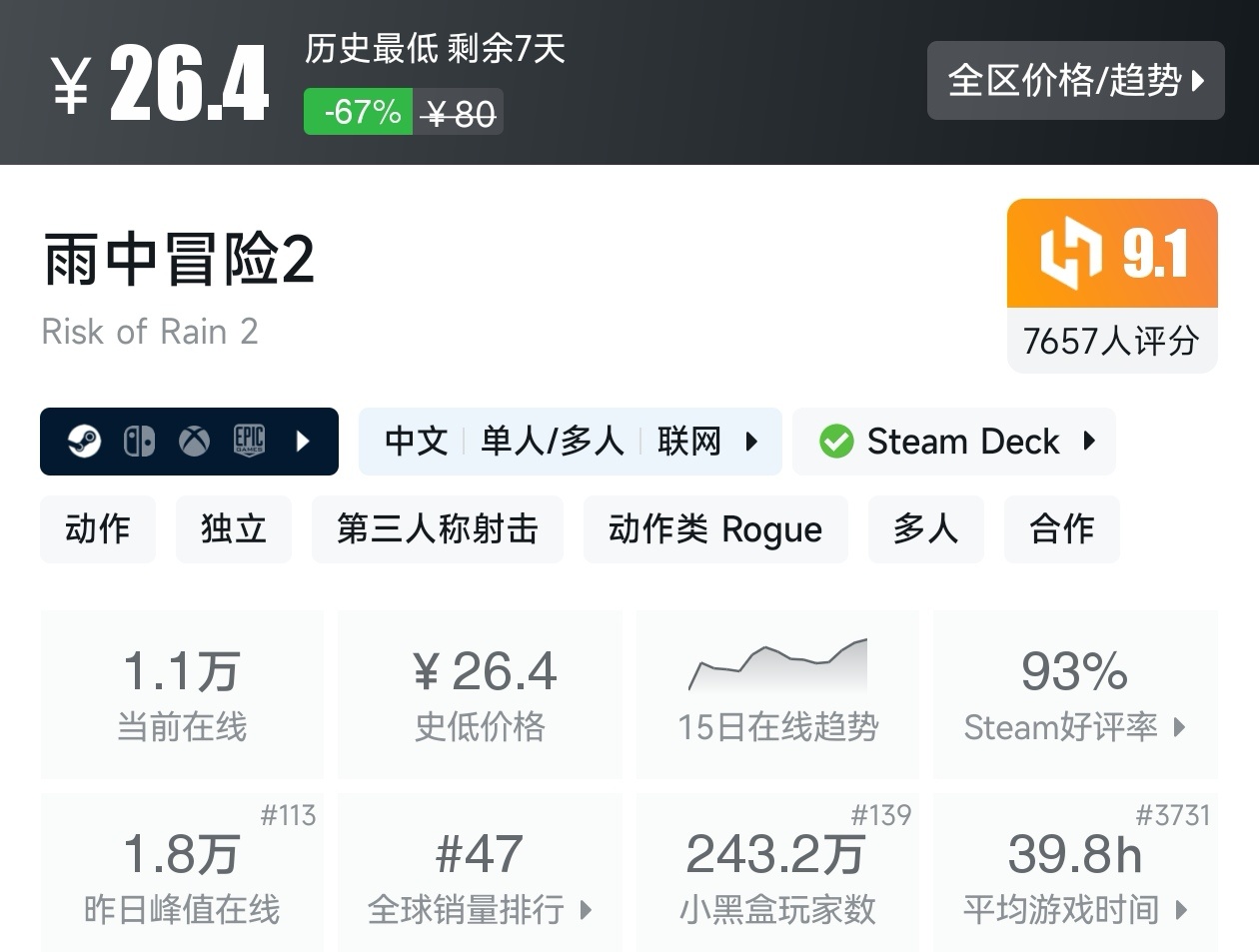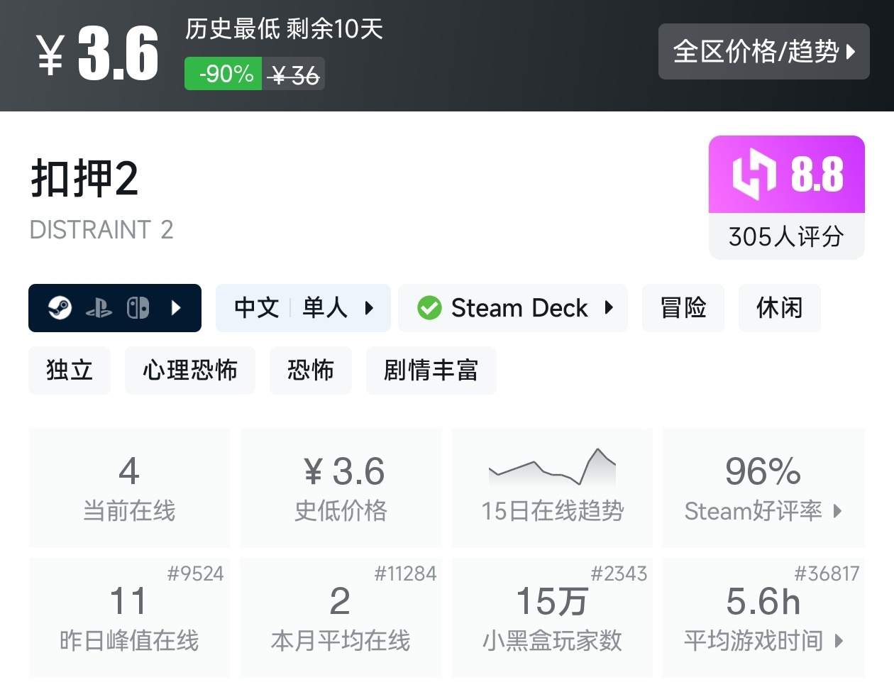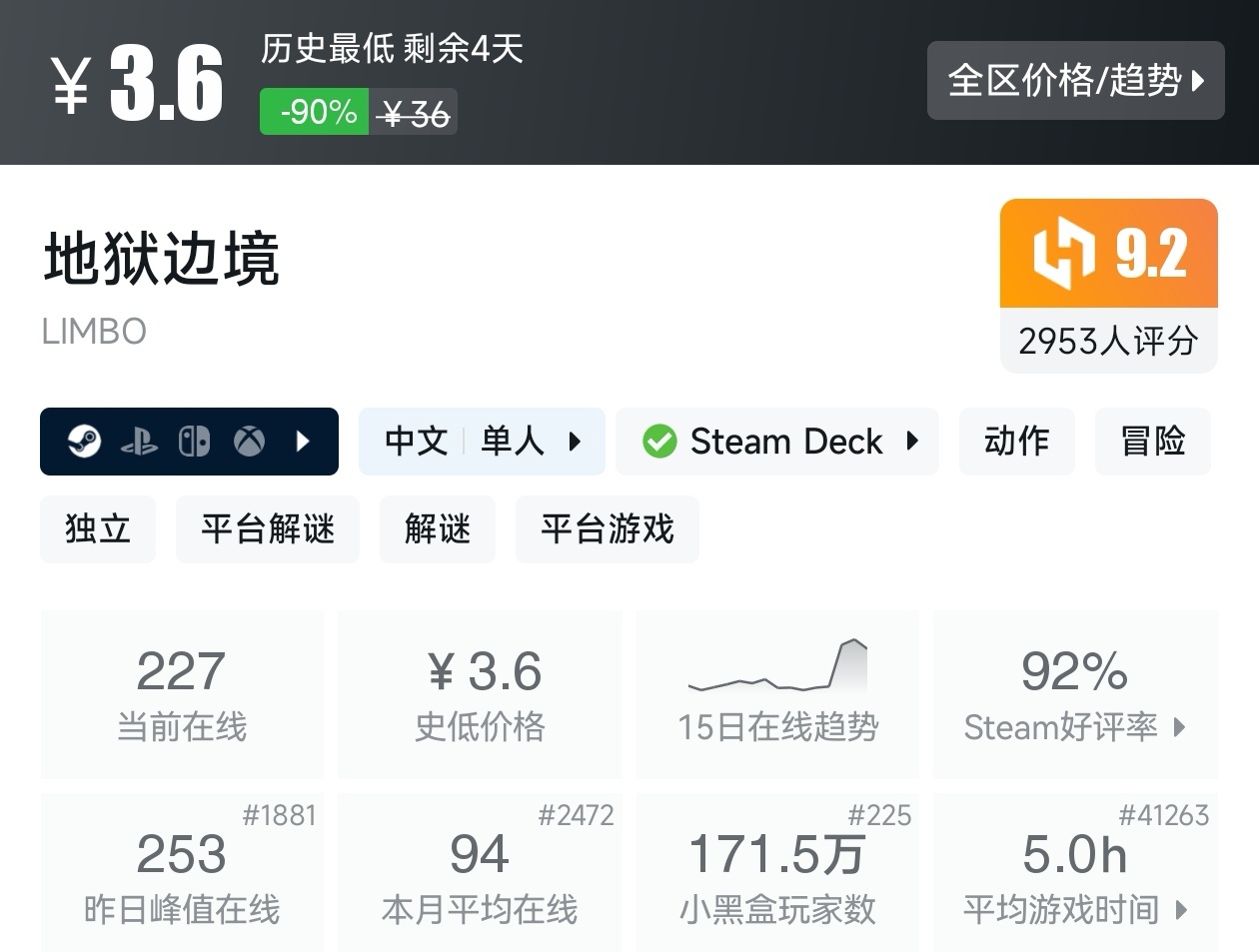 雖然標準版史低爲14.9元,但我還是推薦完全版,有石之心和血與酒DLC,質量很頂,遊戲還迎來了上線10週年。