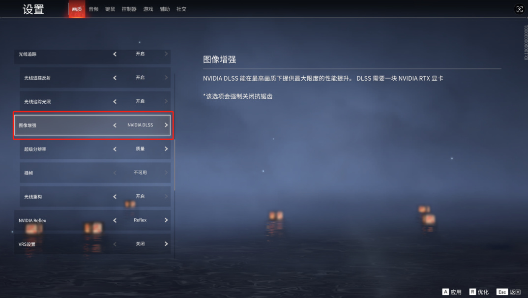 在永劫無間 設置 - 畫質頁 - 圖像增強選項中選擇 NVIDIA DLSS