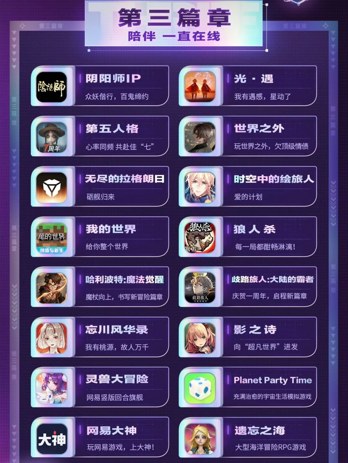 陰陽師、光·遇、第五人格等諸多知名手遊IP則在第三篇章。