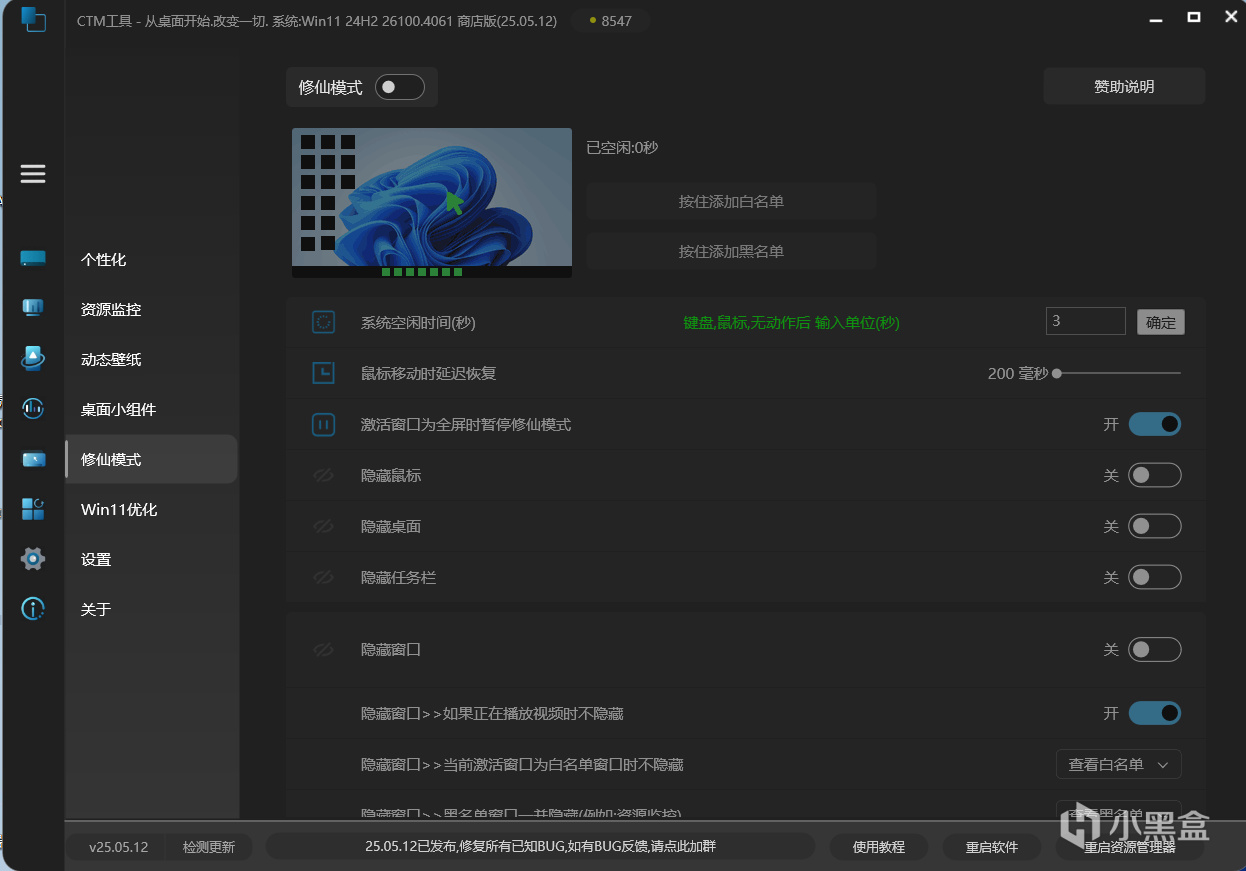 厭倦了千篇一律的Windows界面?CTM工具將徹底改變您的電腦使用體驗!這款系統美化工具專爲追求個性與效率的用戶打造,讓您的桌面煥發新生。無論您是極客玩家、創意工作者還是普通辦公用戶,CTM工具都能滿足您對系統美化和優化的所有想象。