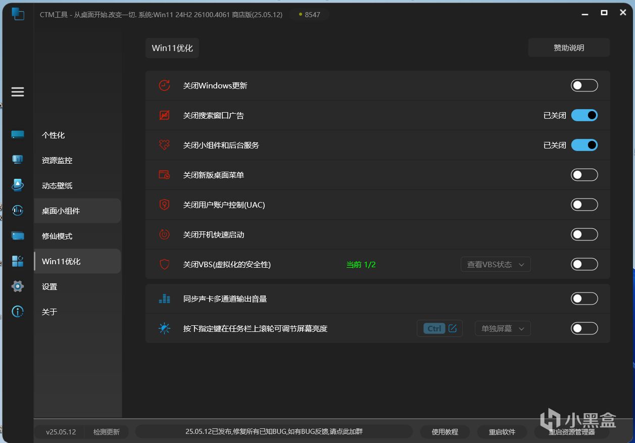 CTM工具是一款由國內開發者團隊精心打造的系統優化與美化工具,這款輕量級軟件支持從Windows 10到最新Windows 11系統,通過創新的界面設計和強大的功能模塊,讓您的電腦既美觀又高效。無需複雜設置,一鍵即可開啓個性化之旅。