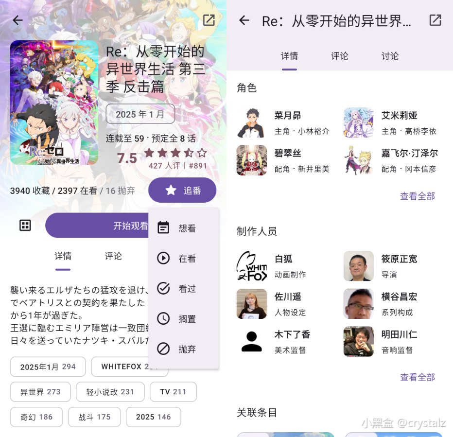 还能浏览来自 Bangumi 的番剧信息和社区评价。