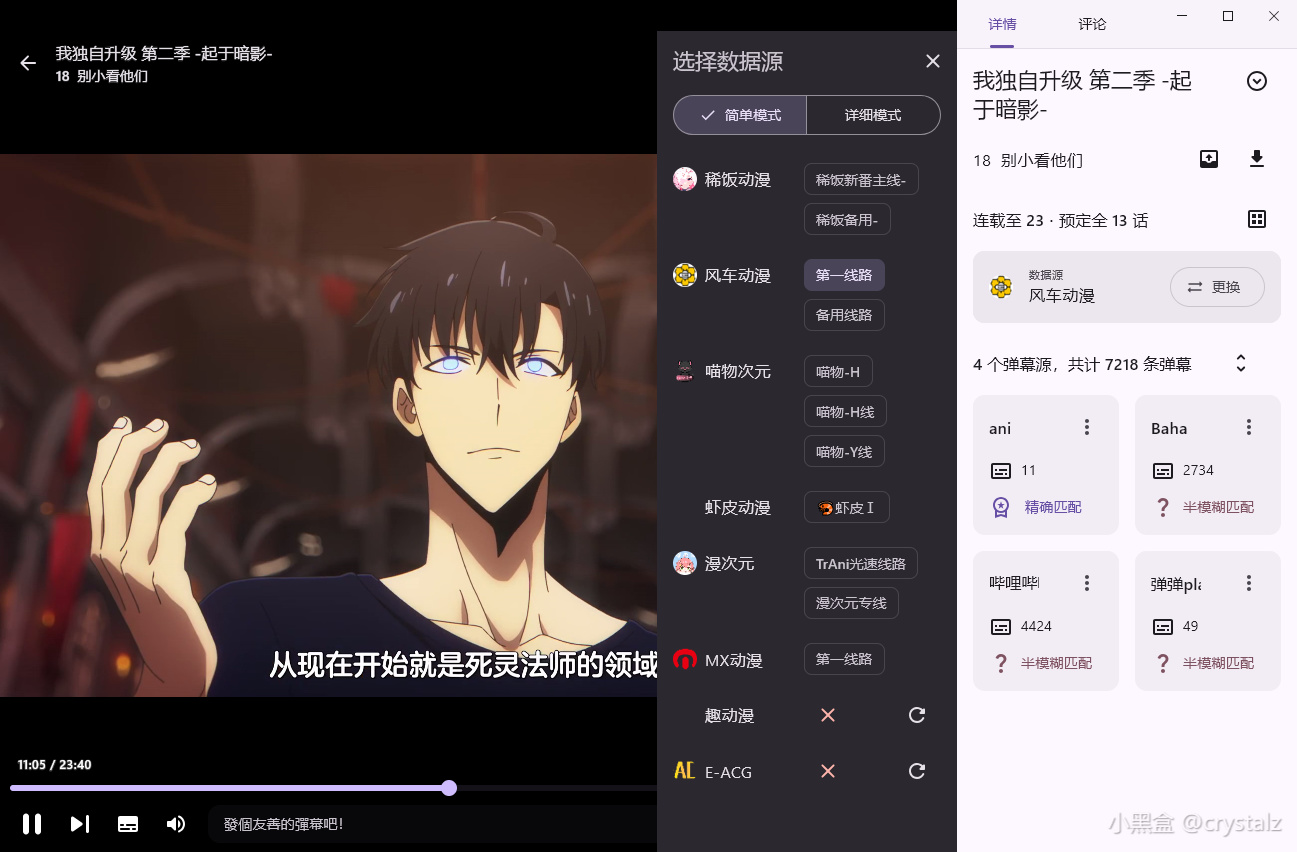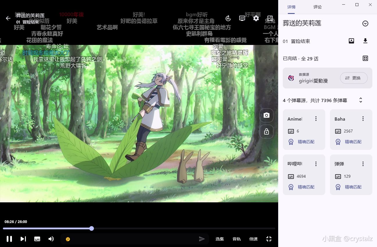 软件默认自动选择播放源,基本全是字幕组的高清视频,支持加载弹幕。