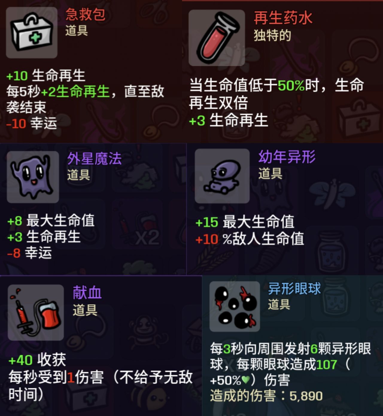 多找能增加近战伤害 攻速 幸运的道具,近战伤害在我们捡消耗品的时候会造成很高的伤害,包括武器:攻速是为了防止我们的近战武器太慢:幸运能增加我们战斗中掉落消耗品的概率,其他的也没啥了,干就完事了